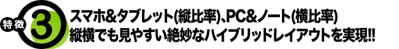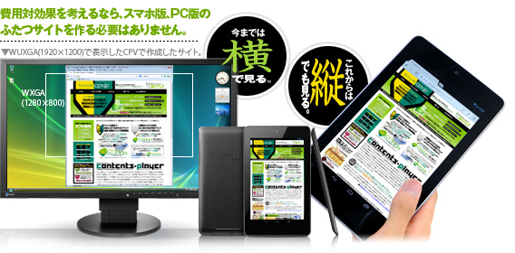 できることなら、PCで作成したイメージをそのままスマホ&タブレットで読みやすく表示したいと考えるのが普通ではないでしょうか。サイト専用CMS[cpv.jp]では、この難題をどちらでも「そこそこ」見られる横幅サイズ824ピクセルにする事で解決しました。この「そこそこのサイズ」を私たちは、ハイブリットレイアウトと呼んでいます。横824のピクセルサイズだからこそ、紙面を構成する画像や文章の量も押さえられ、負担無くページを作成できる利点にもなっています。