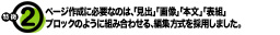 CPV3つの特徴1…事前にサイトに必要なボタン文字装飾や背景色を組み込み済み。へ。